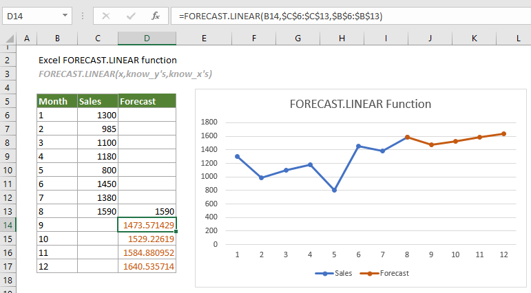 Hàm FORECAST.LINEAR trong Excel 2016 trở lên thay thế hàm FORECAST cũ với cú pháp giống hệt nhau.