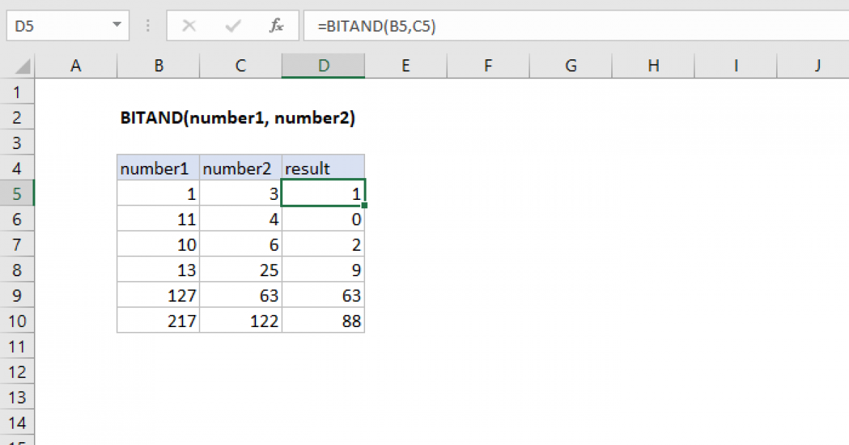 Vậy =BITAND(12, 10) trả về 8.