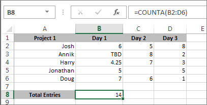 COUNTA hỗ trợ đếm nhiều vùng không liền kề trong một công thức. Điều này hữu ích khi dữ liệu nằm rời rạc trong bảng tính.