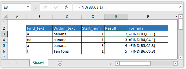=FINDB(find_text, within_text, [start_num]) - Các tham số giống hệt FIND