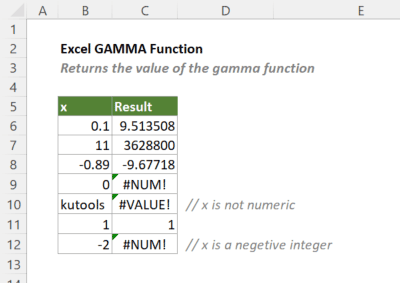 - GAMMA(“3.5”) → Lỗi #VALUE! (văn bản chứ không phải số)