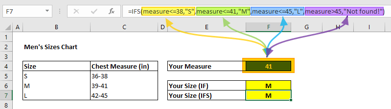 =IFS(điều_kiện1, giá_trị1, điều_kiện2, giá_trị2, điều_kiện3, giá_trị3, ...)