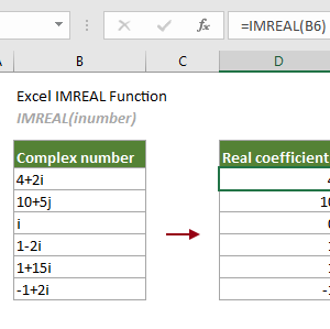 Phương pháp này hữu ích khi hệ số thực và ảo nằm trong các ô khác nhau. Ví dụ với hệ số thực ở ô A1 và hệ số ảo ở ô B1: