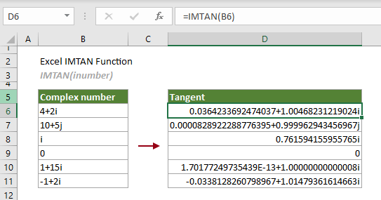 IMTAN tính giá trị tang của số phức theo định dạng x+yi hoặc x+yj. Hàm này xuất hiện từ Excel 2013 và có sẵn trong tất cả phiên bản sau đó bao gồm Excel 2016, 2019, 2021 và Microsoft 365.