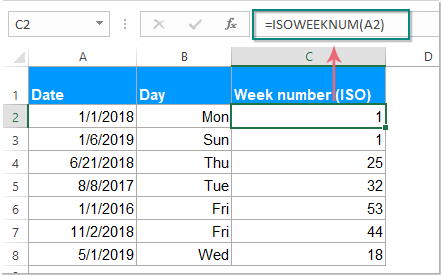 =ISOWEEKNUM(date)