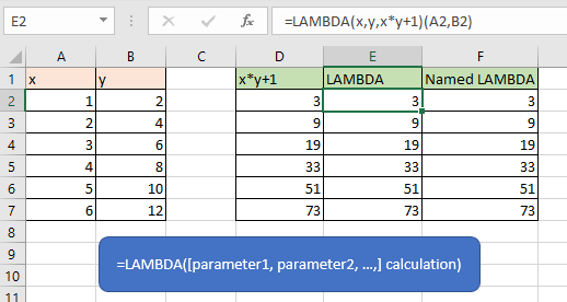 Cú pháp của LAMBDA tuân theo một quy tắc đơn giản: các tham số đầu vào xếp trước, công thức tính toán đặt cuối cùng.