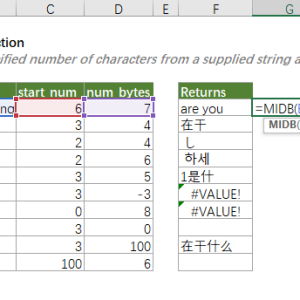 MIDB trích xuất số byte từ vị trí bất kỳ trong chuỗi. Công thức =MIDB(text, start_num, num_bytes) cho phép chỉ định vị trí bắt đầu theo byte. Thay thế cho hàm MID khi làm việc với dữ liệu DBCS.
