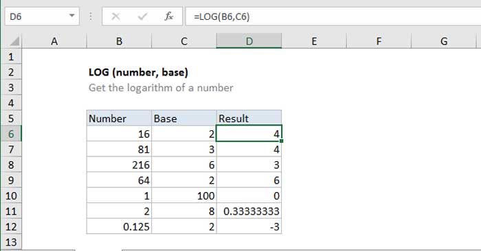 Hàm LOG trả về giá trị logarit của một số theo cơ số bạn chỉ định. Công thức cơ bản là =LOG(number, [base])