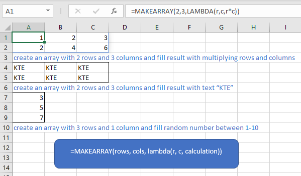 =MAKEARRAY(số_hàng, số_cột, LAMBDA(r, c, phép_tính))