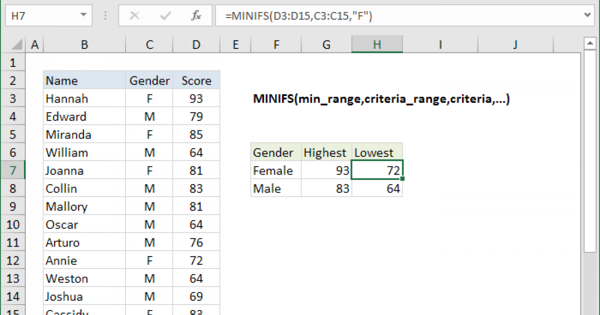 =MINIFS(phạm_vi_tìm_min, phạm_vi_điều_kiện_1, điều_kiện_1, [phạm_vi_điều_kiện_2, điều_kiện_2], ...)