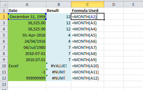 =MONTH(A2)
