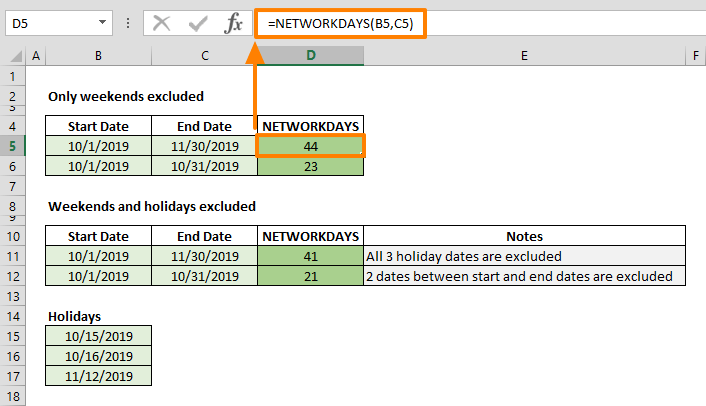 =NETWORKDAYS(ngày_bắt_đầu, ngày_kết_thúc, [ngày_nghỉ_lễ])
