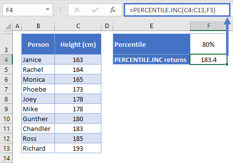 - Thay thế bằng =PERCENTILE.INC( giữ nguyên tham số