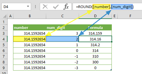 =ROUND(Number, Num_digits)