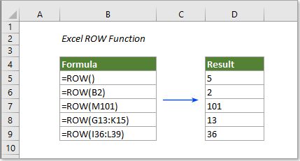Ví dụ cụ thể: Công thức =ROW(D8) luôn trả về 8 bất kể bạn đặt công thức ở ô nào. Còn =ROW() thì trả về số hàng của chính ô đó.