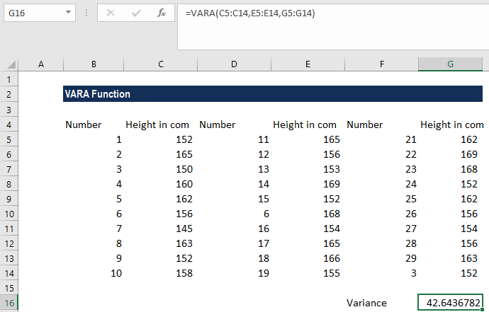 Cặp hàm VARA và VARPA hoạt động giống như cặp VAR.S và VAR.P, nhưng xử lý text và logical.